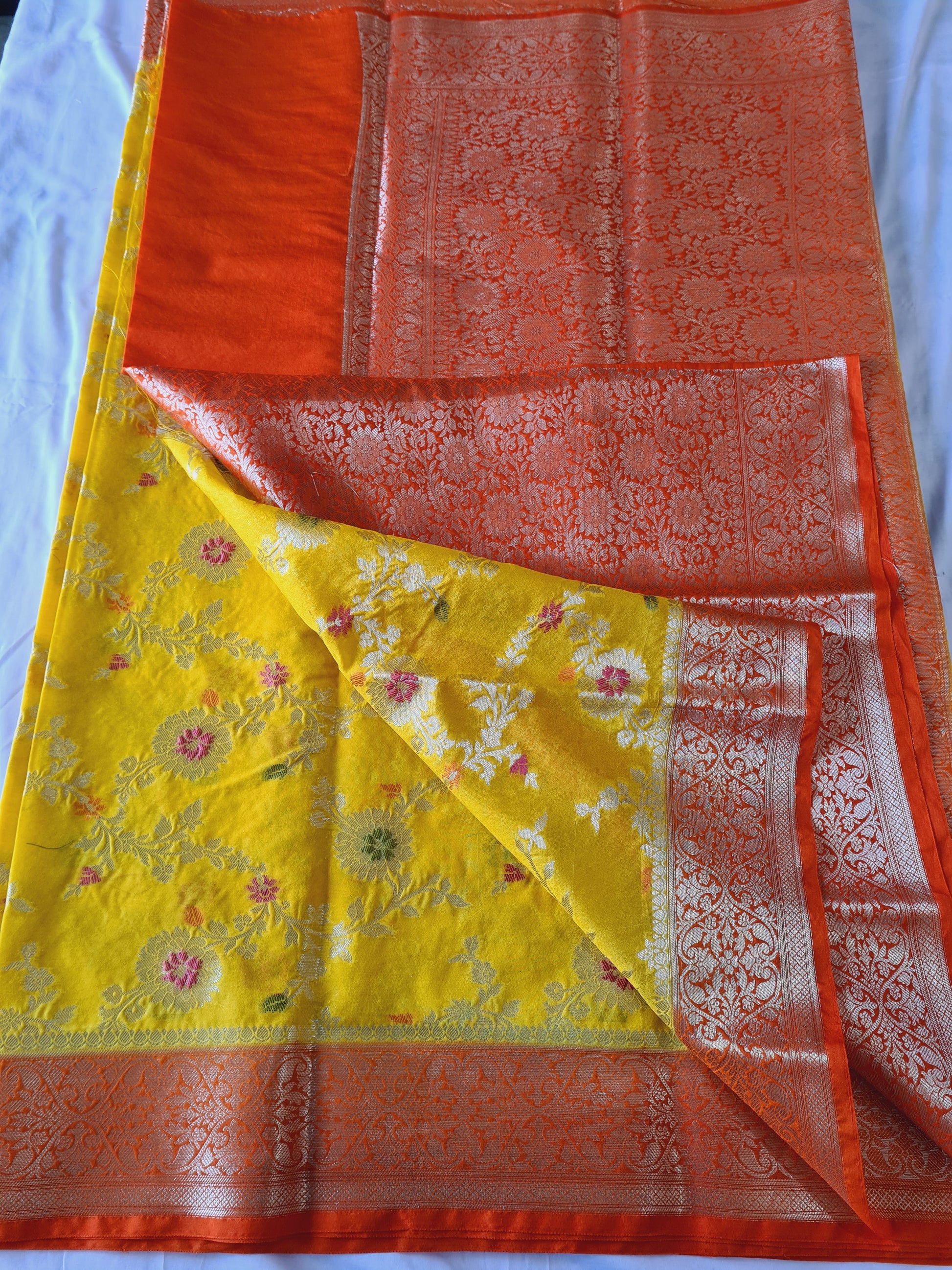 The Jaal Raw Mango design for sarees features intricate, traditional patterns woven across the fabric, creating a stunning visual appeal. Paired with a contrasting combination, this design elevates the saree, adding a vibrant yet sophisticated charm. Perfect for any occasion, it blends timeless elegance with a modern twist, Great for summers. 5 Options to look for!