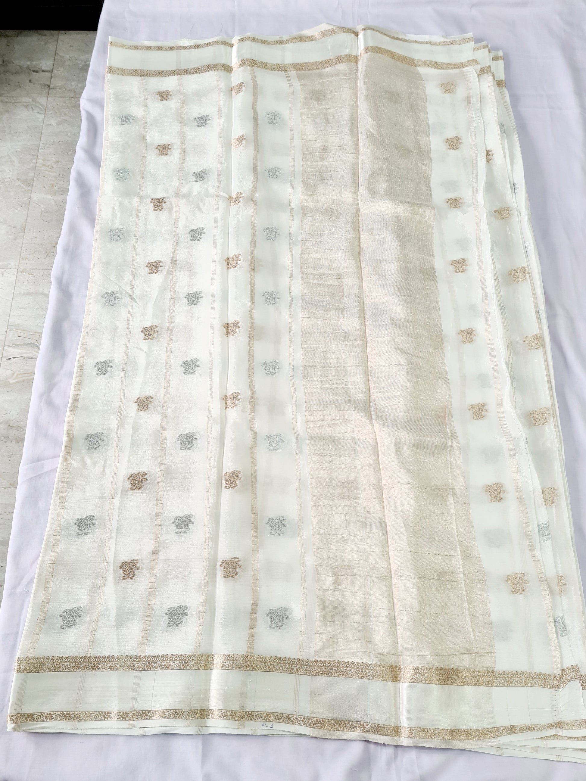 Pure Chiffon White with Golden Buti