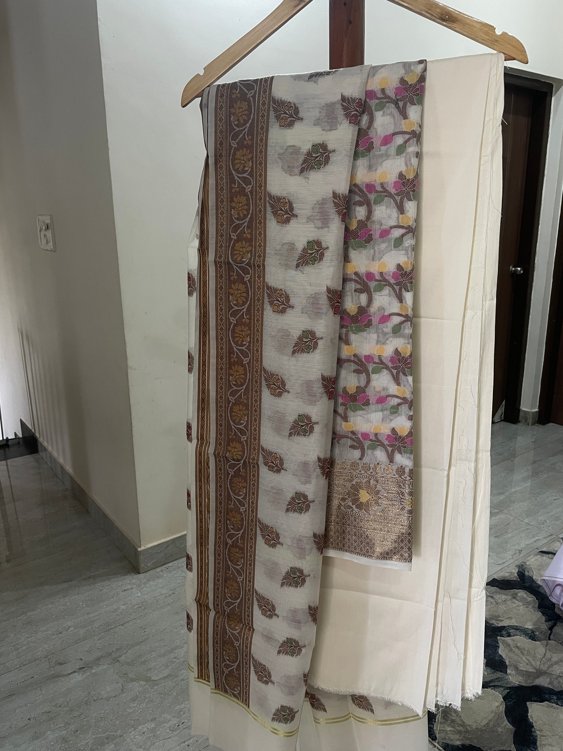 Elevate your traditional wardrobe with this off white Salwar 3-piece set, expertly crafted for both comfort and style. The rich marron hue offers a timeless appeal, while the coordinated pieces ensure a cohesive and elegant look. Ideal for festive occasions or everyday wear, this set combines classic design with versatile functionality.